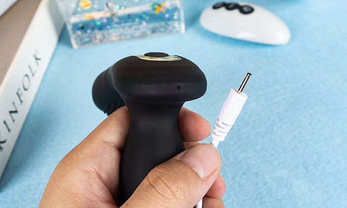 在按摩器底部只有一个按钮,长按(开启与关闭),短按(同时变频震动与扣动)共7个频段可调。