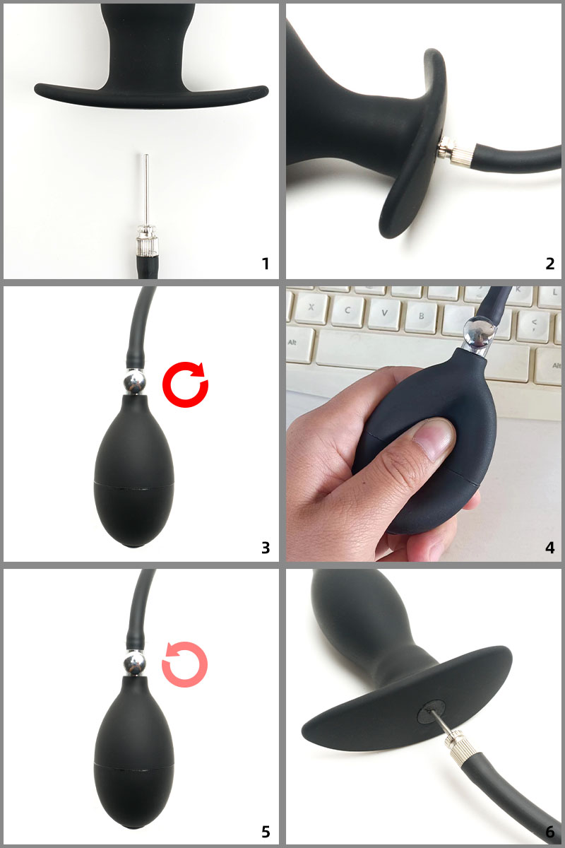 注意:新肛塞初次使用如无法充气,请把气针插到底后再用力往里戳一下,会听到“po”一声把里面戳通就可以充气了。另外,检测气针连接处和气阀是否拧紧。