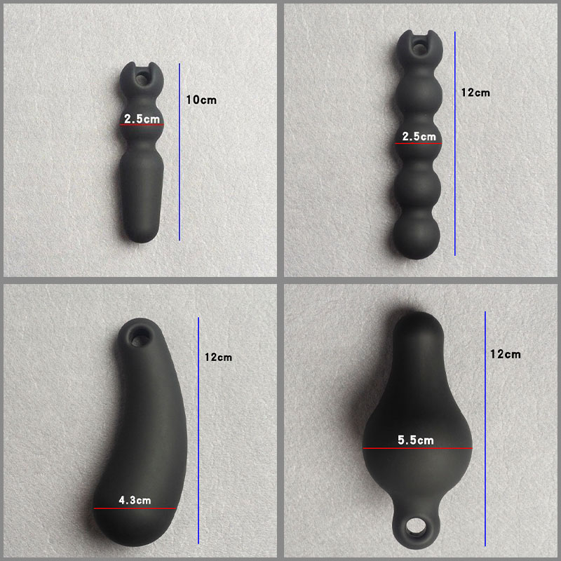 肛塞有4个直径尺寸,没有开发过后庭的新手,可以选择指尖或者五珠(直径均为:2.5cm)。其他玩家按照自己的开发程度选择就可以。