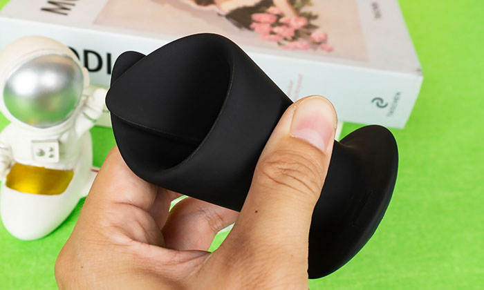 为了让插入更容易,先把开口位置用手指捏合,这样可以让插入端变小插入时自然更容易。另外,记得润滑剂是最后插入前涂抹,千万别一开始就涂润滑剂,因为这样抓不牢。