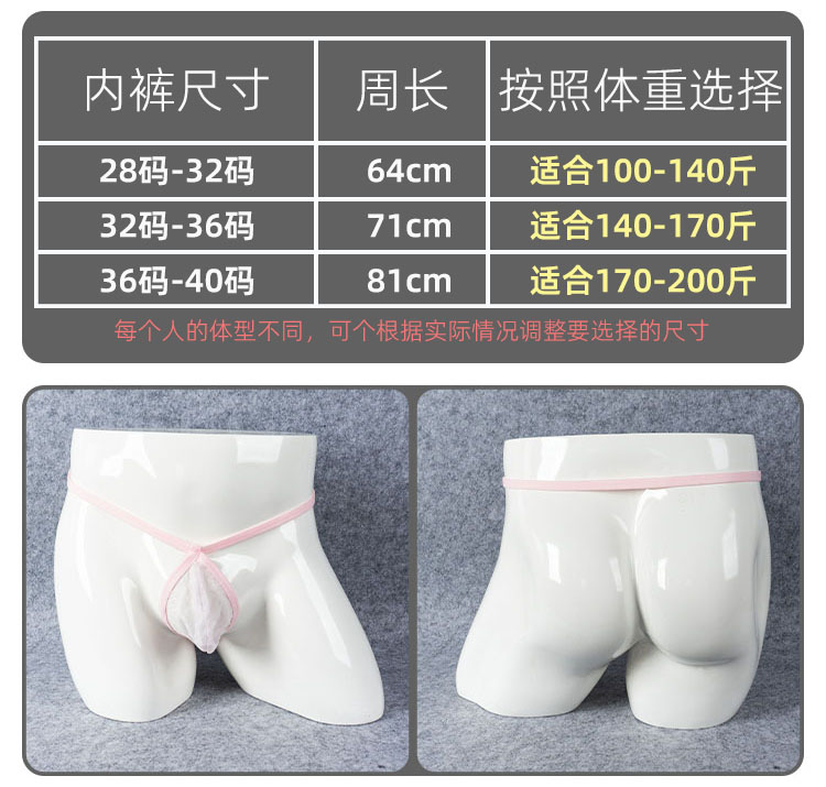 内裤的尺寸是腰围英寸的意思,如果知道自己的英寸腰围,然后选择合适的范围就可以。但如果不知道,那就按照体重来选择也可以。肛塞内裤后面没有布料,所以腰围的拉伸会更大,所以选择时尺寸差不多就可以。